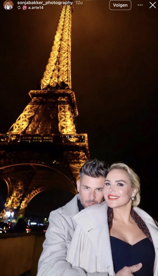 Op haar fotografie-account plaatst Sonja een beeld waarop ze samen met een jongere man te zien is. Ze poseren dicht tegen elkaar aan, met de Eiffeltoren op de achtergrond. Zo’n setting is natuurlijk romantisch geladen, zeker in Parijs.