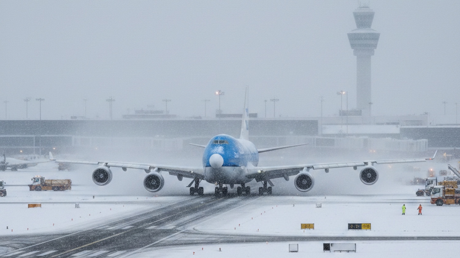 KNMI voorspelt lokaal 7 centimeter. Dat verstoort alles flink. Vliegtuigen blijven aan de grond. Je voelt de teleurstelling al. Herinneringen aan jaarwisseling spoken op. Schiphol voorkomt het ergste.