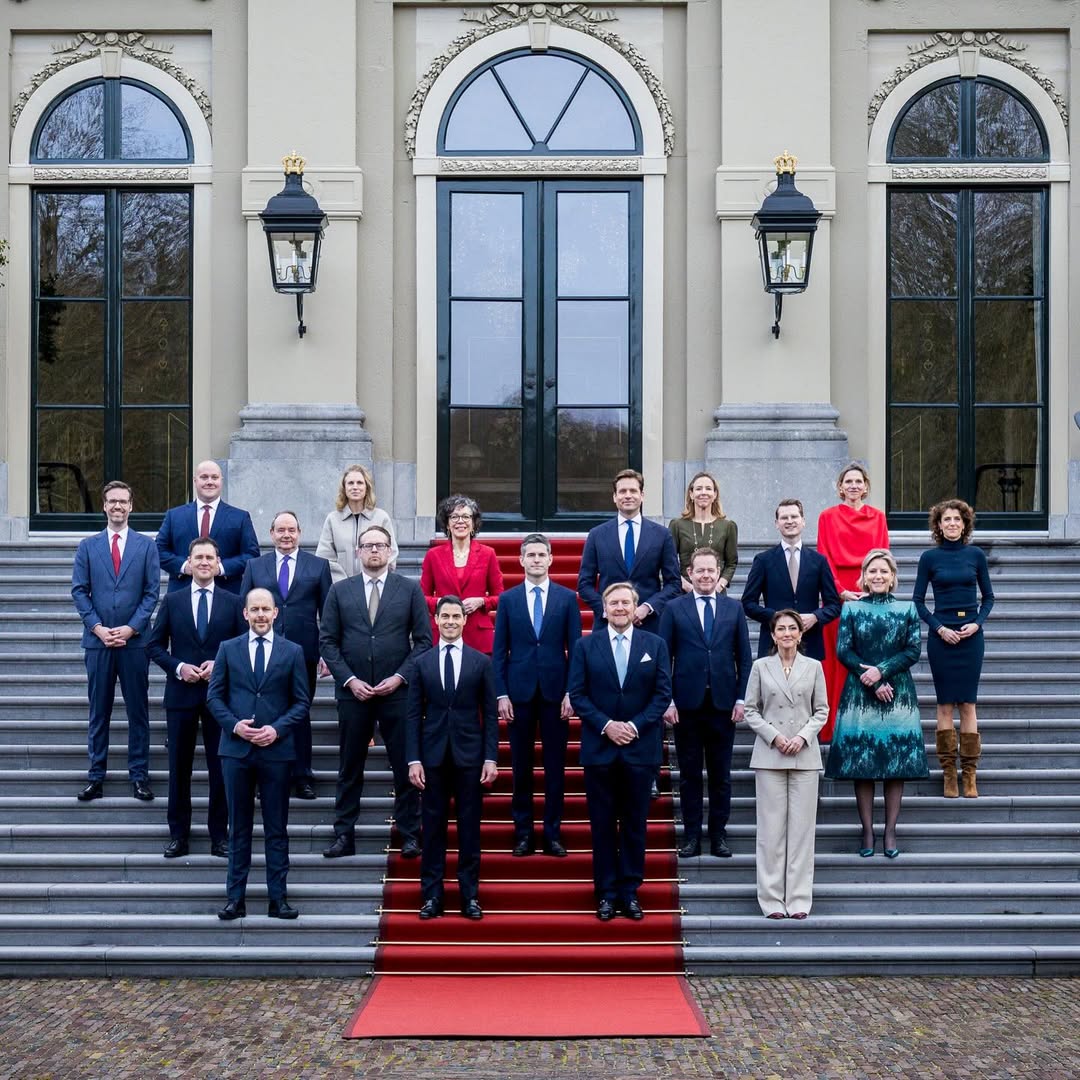 Na de beëdiging volgde in het paleis een groepsfoto met alle bewindspersonen. Daarna werd buiten de traditionele bordesfoto gemaakt met alleen de ministers, het beeld dat vaak symbool staat voor “het nieuwe team” dat het land gaat besturen.